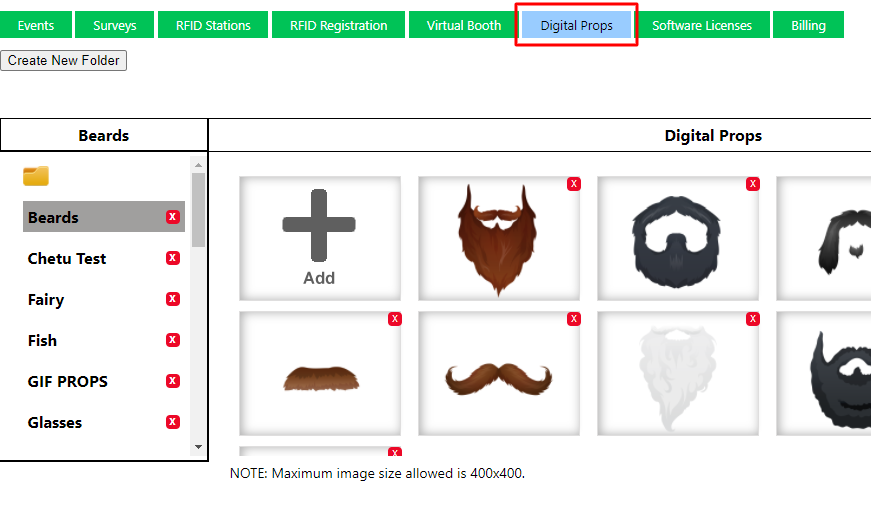 To add Stickers/Digital Props, go to the Digital Props tab in Event Manager.