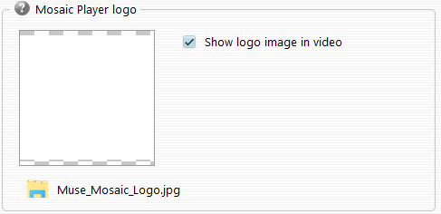 Mosaic Player Logo: Muse Mosaic allows you to add a logo image that will appear in your Mosaic Player window. Click the folder icon to select an image file for your logo. PNG files with transparency often work best.