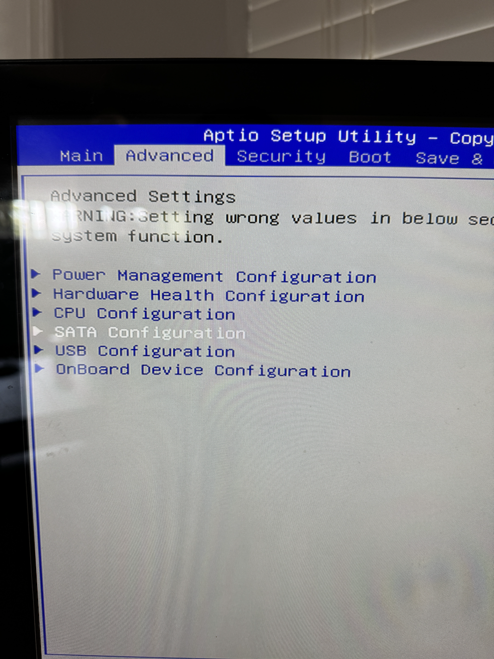 If your Infinite or Venture boots to a black American Megatrends screen, you should perform the following: