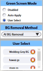 To apply AI BG to GIFs, setup as usual, but once AI BG Removal is enabled in the Green Screen tab the backgrounds will behave as usual (minus the need for a backdrop):