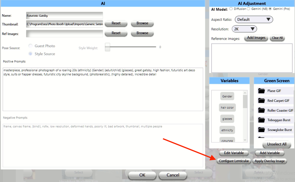 Step 2: Open filter, and select 'Configure Lenticular'