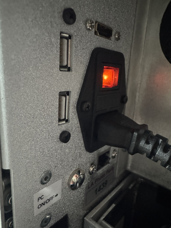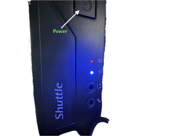 If after reconnecting the red/black cable nothing happens, you can turn the PC on directly. In the front of the Shuttle/PC, there is a power button. This may be square or round depending on the generation of the PC: